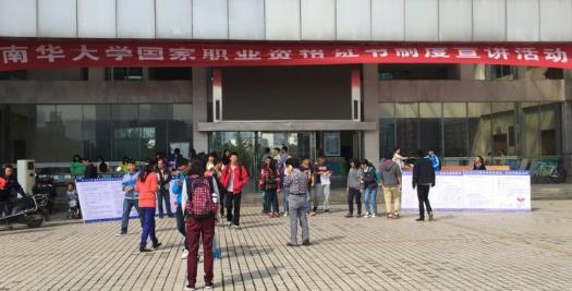 为大力推行国家职业资格证书制度,加快技能人才队伍建设,更好地服务我校学生就业和经济社会发展,贯彻执行湖南省人力资源和社会保障厅职业技能鉴定中心下发的《关于开展2015年国家职业资格证书制度宣讲活动的通知》(湘人社鉴函〔2015〕5号)文件,2015年10月11日上午继续教育学院在米兰平台第1教学楼前坪举办了国家职业资格证书制度宣讲活动。活动通过在校园布置宣传横幅、摆放展架、发放相关宣传资料、现场问卷调查方式进行,让学生更多的了解了国家职业资格制度。